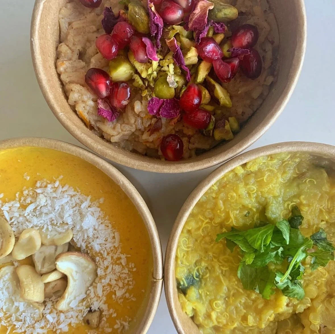 Experience the healing power of nutrition with weekly deliveries of nutritious, Ayurveda-inspired meals right to your door for the first four weeks. Each week, you'll receive one breakfast, two lunches, two dinners, and one snack, carefully prepared to nourish your body and support your well-being. Let us bring balanced, flavorful meals to your home so you can focus on what truly matters.